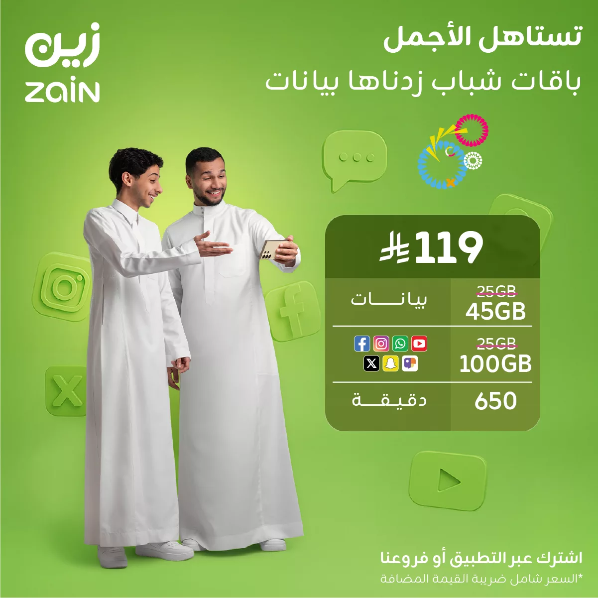 عروض زين السعودية على باقات شباب 119 زدناها بيانات تعطيك الأجمل دائما من بيانات و سوشال و دقائق هذه العروض الحصرية لا تفوت