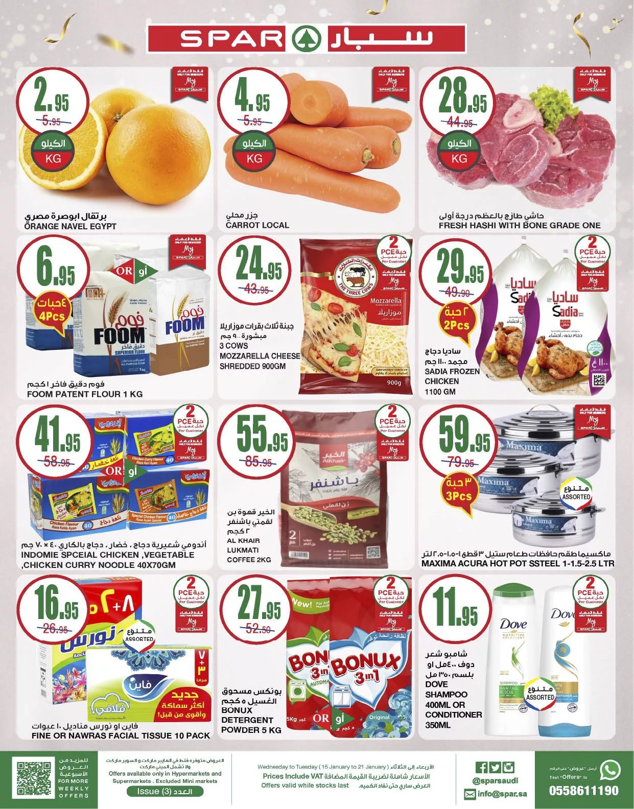 عروض سبار السعودية الأربعاء 15 يناير 2025 تمنحك فرصة فريدة للتوفير مع تخفيضات هائلة على مختلف المنتجات. تشمل العروض خصومات على الفواكه الطازجة و المخبوزات العضوية ومنتجات الألبان كما تتوفر تخفيضات على المنتجات المجمدة مثل البيتزا الجاهزة أصابع السمك والدجاج المتبل