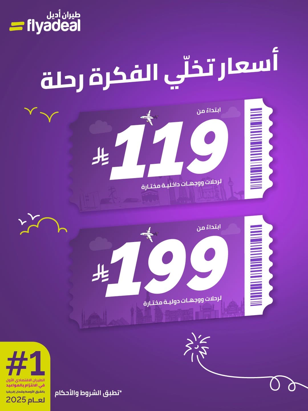 • ابتداءً من 119 ريال لرحلات ووجهات داخلية مختارة