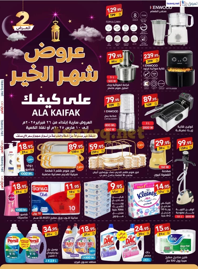 عروض على كيفك لهذا الشهر تأتي بمفاجآت رائعة مع خصومات تصل إلى 50% على الأجهزة الكهربائية مثل القلايات الهوائية والعجانات مما يجعلها فرصة رائعة لاقتناء أفضل المنتجات بأسعار مخفضة كما توفر العروض مجموعة من مستلزمات التنظيف من أشهر العلامات التجارية مثل DAC وفيري وكلينكس،