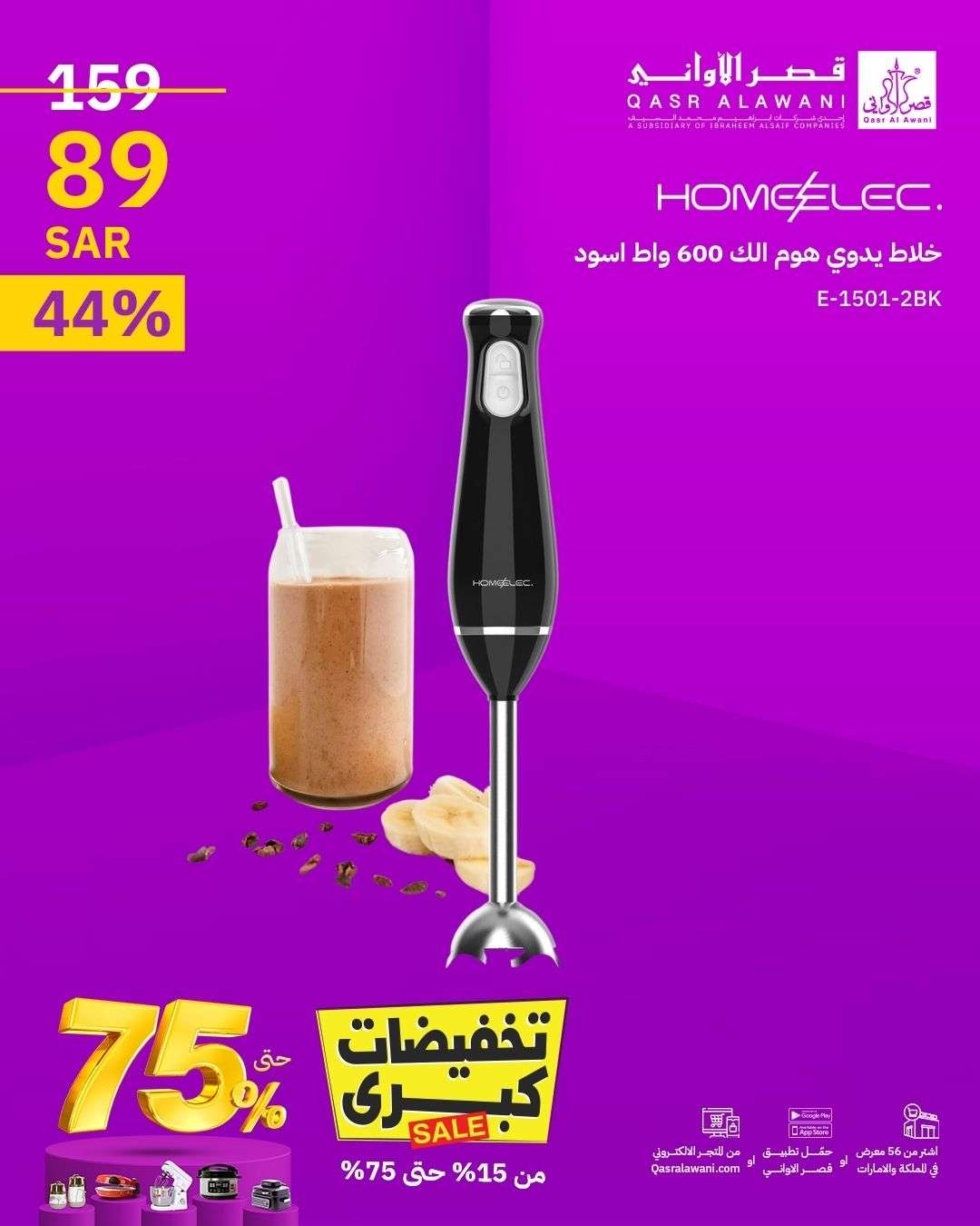 عروض قصر الأواني تقدم تشكيلة متنوعة من الأجهزة المنزلية والمطبخية بجودة عالية وأسعار تنافسية تناسب جميع الفئات و تشمل هذه العروض أبرز الماركات الشهيرة مثل هوم الك وفريش التي تجمع بين التصميم العصري والأداء الممتاز ما يميز هذه العروض هو الخصومات الكبيرة التي تصل حتى 75% مما يجعلها فرصة مثالية للتوفير.