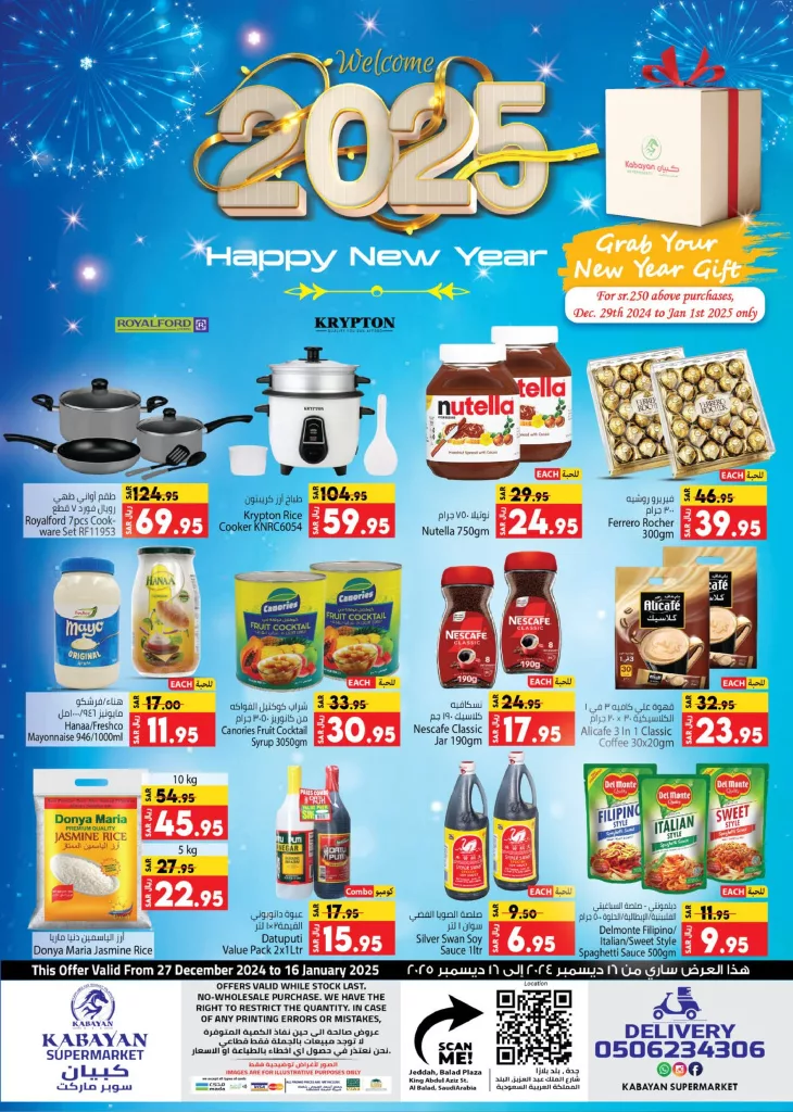عروض كابيان هايبر ماركت جدة الأسبوعية تبدأ يوم الجمعة 27 ديسمبر 2024 و هذه العروض تتيح لك فرصة مذهلة للحصول على أفضل المنتجات بأسعار تنافسية لا تفوت و وتشمل أقساما متعددة لتلبية جميع احتياجاتك باسعار لا تقبل المنافسة مع ضمان الجودة ايضا