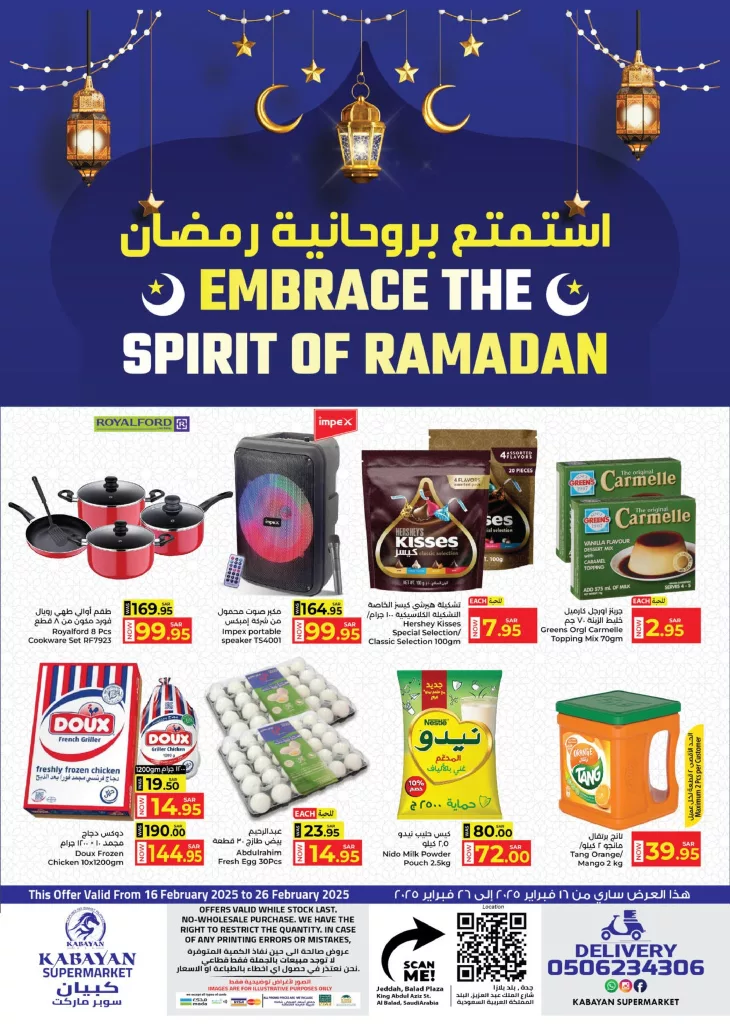 تقدم عروض كبایان سوبر ماركت عروضا مذهلة الاحد 17 شعبان 1446هـ على تشكيلة واسعة من المنتجات بمناسبة شهر رمضان المبارك حيث تتوفر المواد الغذائية الأساسية بأسعار تنافسية و تشمل عروض الأرز و الزيوت والتوابل إلى جانب المعلبات والمنتجات المجمدة التي تضمن تحضير وجبات رمضانية شهية