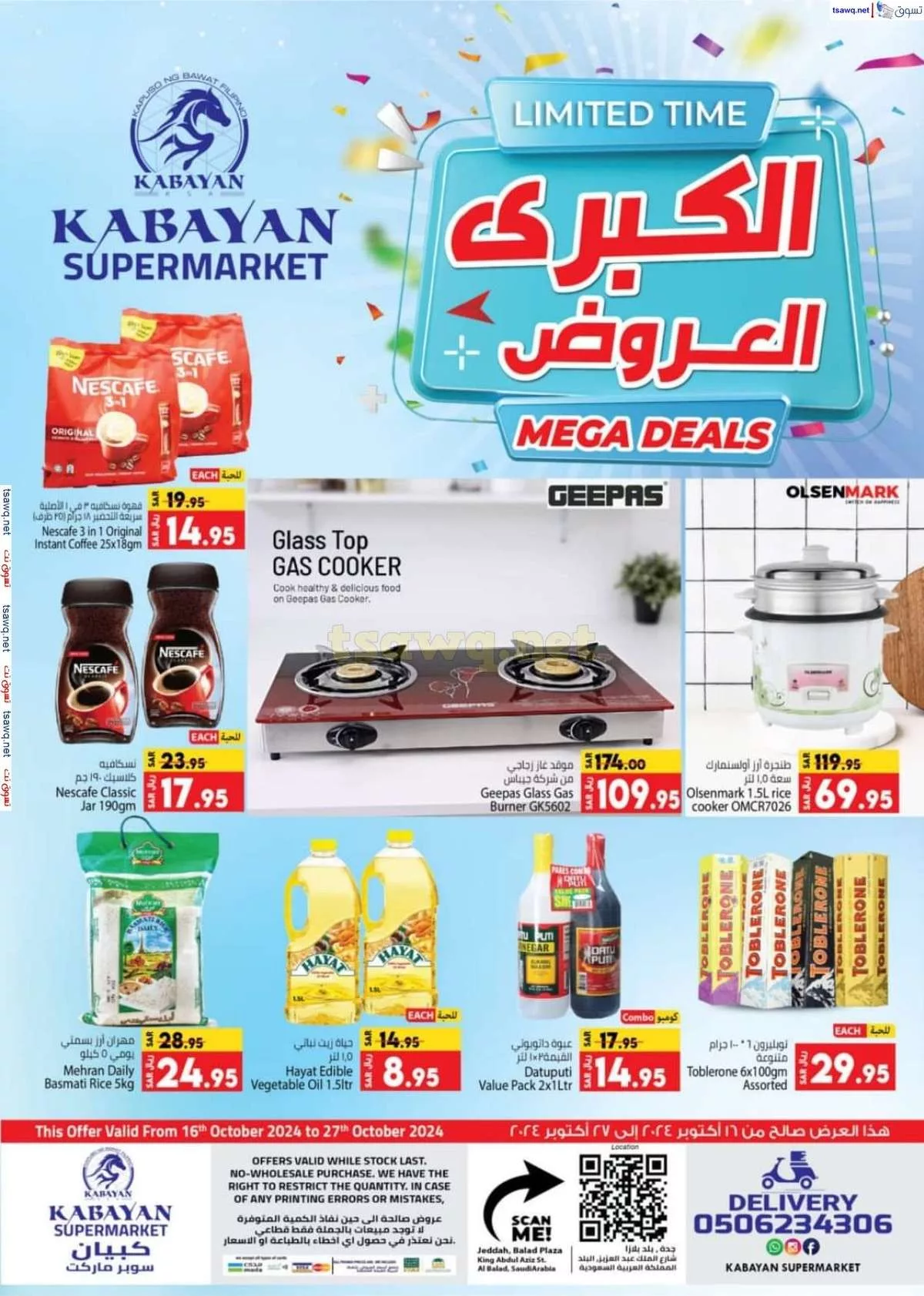 - تنتهي العروض الاحد 27 أكتوبر 2024 الموافق 24 ربيع الثاني 1446هـ