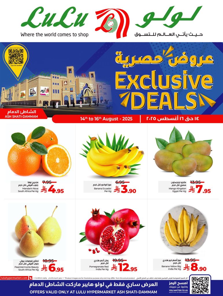عروض لولو الدمام الخميس 14 اغسطس 2025 تقدم تشكيلة واسعة من الفواكه والخضروات الطازجة حيث تتوفر الفواكه الموسمية مثل المانجو والموز والرمان والكمثرى بجودة عالية وطعم لذيذ كما تضم العروض الخضروات الطازجة مثل الخيار والجزر والخس والبروكلي والمورينجا والفطر و تشمل أيضا قسم الأجبان والألبان المميز