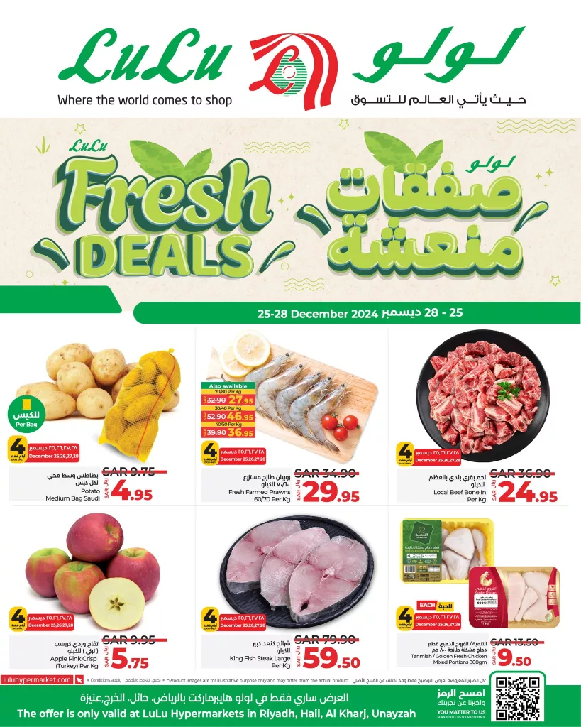 عروض لولو الرياض الأربعاء 25 ديسمبر 2024 تبهِر سكان الرياض بمجموعة متنوعة من التخفيضات المميزة و تشمل العروض السلع التموينية الأساسية مثل الطحين و المعكرونة والزيوت إلى جانب المخبوزات الطازجة والأجبان العالمية كما توفر العروض خصومات كبيرة على اللحوم الطازجة و الدواجن والمأكولات البحرية