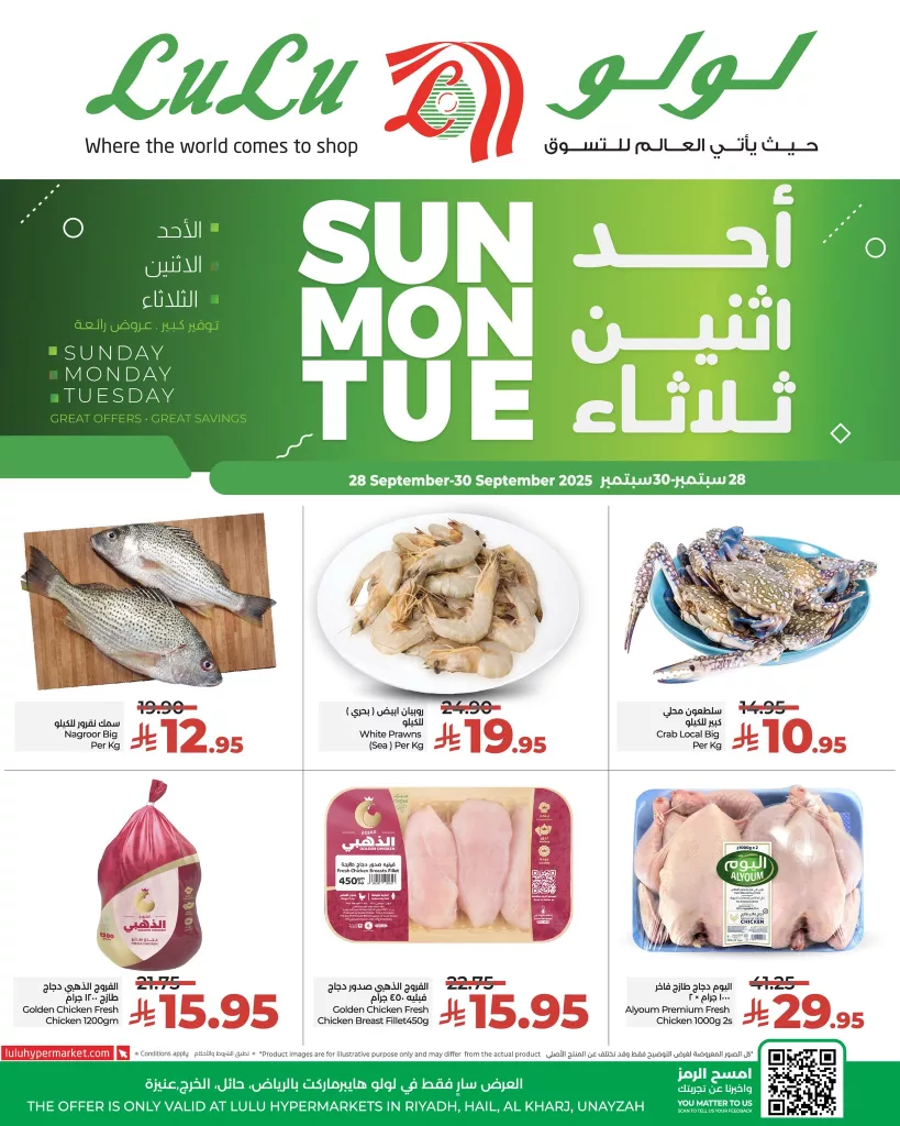 عروض لولو الرياض الأحد 28-9-2025 تقدم مجموعة مميزة من المنتجات الغذائية الطازجة التي تلبي احتياجات الأسرة اليومية مع تشكيلة متنوعة من اللحوم الطازجة والدواجن المجمدة و تشمل أيضا العديد من أصناف الجبن والمخبوزات والوجبات السريعة كما تتضمن العروض خيارات واسعة من المنتجات البحرية والأسماك الطازجة باقل الاسعار