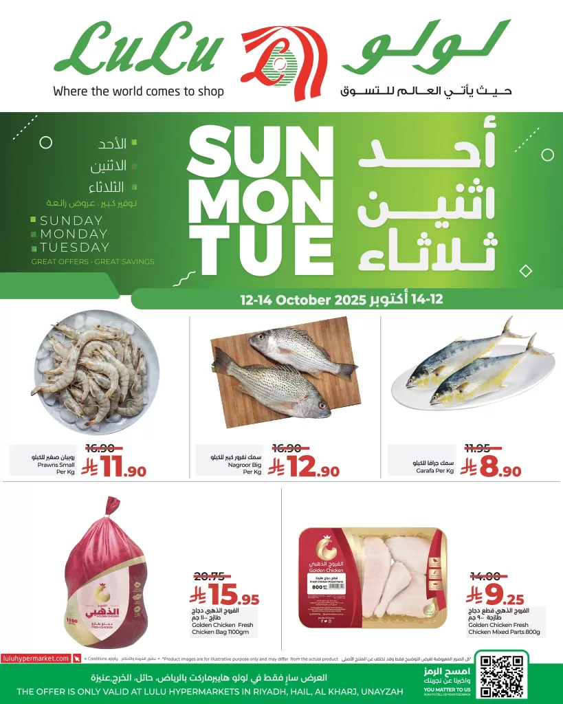 عروض لولو الرياض الأحد 12-10-2025 تقدم مجموعة متنوعة من المنتجات الطازجة والمختارة بعناية من الأسماك والدواجن واللحوم مع تشكيلة واسعة من الخضراوات والفواكه والمنتجات الغذائية اليومية و تمتاز بتقديمها أشهر العلامات التجارية في منتجات الأجبان والزيتون والزيوت والأرز والشاي والبقوليات بالإضافة إلى أشهر المع