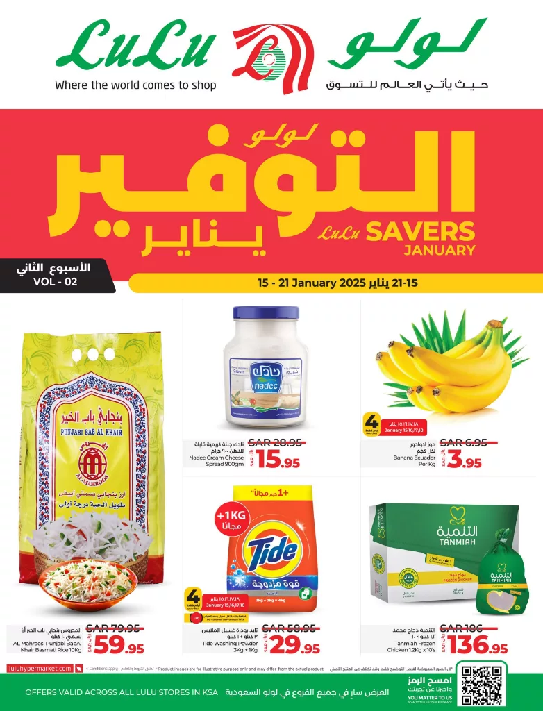 عروض لولو السعودية الأربعاء 15 يناير 2025 تقدم خصومات مميزة على مجموعة متنوعة من المنتجات لتلبية جميع احتياجات الأسرة السعودية و تتضمن العروض تخفيضات كبيرة على الأرز و الزيوت ومنتجات الألبان الأساسية التي لا غنى عنها في أي منزل بالإضافة إلى ذلك و توفر لولو خصومات خاصة على الفواكه والخضروات الطازجة،