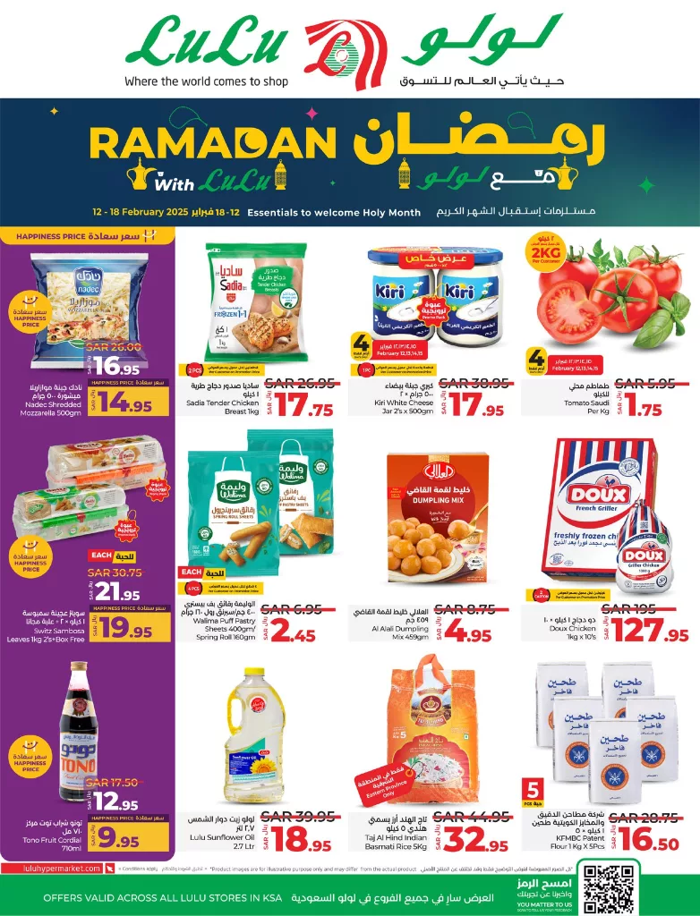 تقدم لولو السعودية مجموعة مذهلة من العروض الاربعاء 12 فبراير 2025 على المنتجات الغذائية والمستلزمات المنزلية بمناسبة الشهر الكريم و تشمل التخفيضات خصومات ضخمة على الأجبان و المخبوزات و اللحوم المجمدة والخضروات مما يوفر فرصة رائعة لتخزين الاحتياجات الأساسية بأسعار أقل