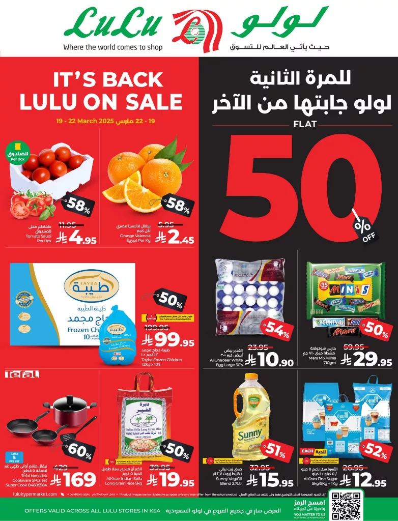 عروض لولو السعودية الاربعاء 19 رمضان 1446هـ تعود من جديد بتخفيضات هائلة على مختلف المنتجات لتلبية احتياجات العملاء بأفضل الأسعار و تشمل العروض خصومات تصل إلى 58% على الخضروات والفواكه الطازجة مثل الطماطم المحلي والبرتقال المصري مما يجعلها فرصة رائعة للتسوق الذكي.