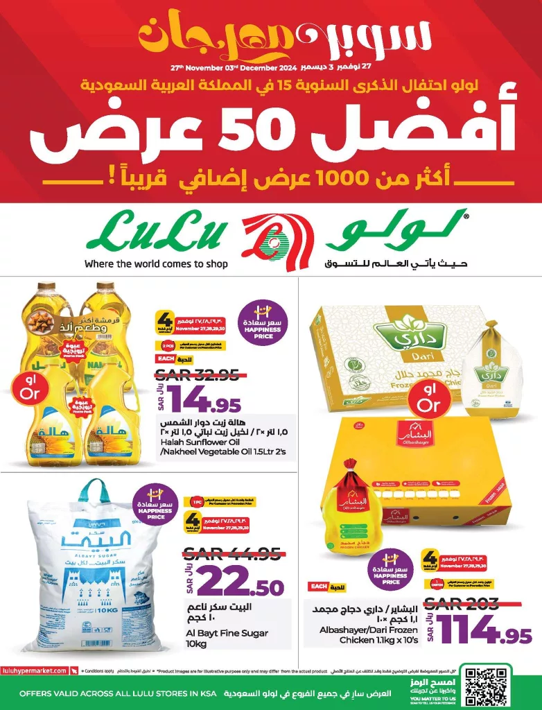 العرض يشمل منتجات مميزة بعروض تصل إلى أكثر من 1000 عرض إضافي قريبا مما يجعل تجربة التسوق مليئة بالمفاجآت كما تغطي التخفيضات احتياجات الطهي و العناية الشخصية وأدوات التنظيف بجانب مستلزمات المنزل والأثاث و تضمن لولو تقديم أفضل المنتجات بجودة عالية وأسعار مناسبة.