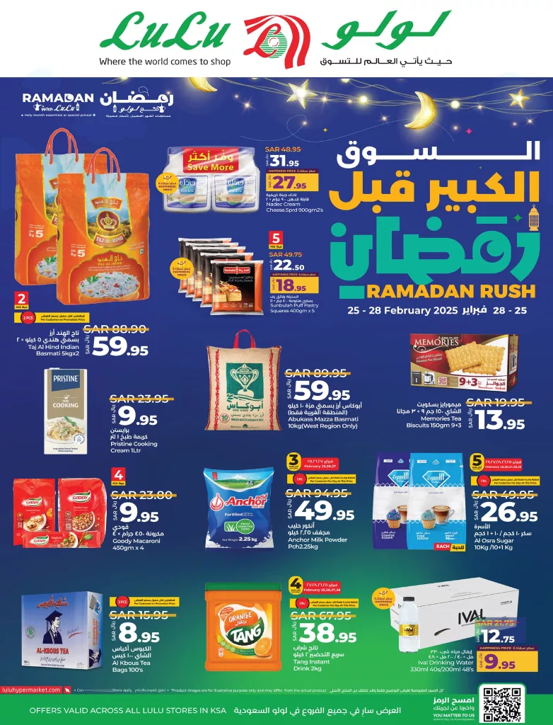 تقدم عروض لولو السعودية تخفيضات هائلة على المنتجات الأساسية لشهر رمضان المبارك، حيث تجدون خصومات كبيرة على الأرز و الدقيق والمنتجات الأساسية التي لا غنى عنها في كل بيت سواء كنت تبحث عن الأرز البسمتي الفاخر أو الحليب المجفف فإن هذه العروض توفر لكم تشكيلة متنوعة بأفضل الأسعار