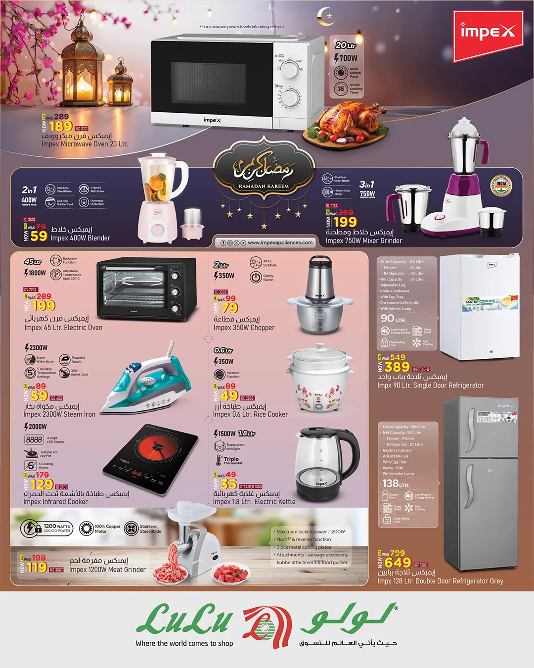 عروض لولو السعودية تستمر في تقديم التخفيضات المميزة على الأجهزة المنزلية وأجهزة المطبخ، مما يجعلها فرصة مثالية لكل من يرغب في تجديد منزله بمنتجات عالية الجودة بأسعار أقل. تتنوع العروض لتشمل ميكروويف إمبيكس العملي، والخلاطات والمطاحن التي تساعد في تحضير الأطعمة بسهولة،
