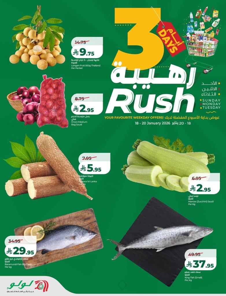 بنقدم ليكم احدث عروض لولو المنطقة الشرقية الطازج الاحد 18 يناير 2026 -29 رجب 1447هـ و بتشمل علي الدواجن والأسماك واللحوم منها الدجاج الإنتاجي والسمك والجمبري واللحم البقري المفروم والكفتة والكبد في تشكيلة طازجة متنوعة و بتوفر كمان الفواكه والخضروات والمنتجات الغذائية مثل العنب واللوز الهندي والكركند والفاصوليا الخضراء
