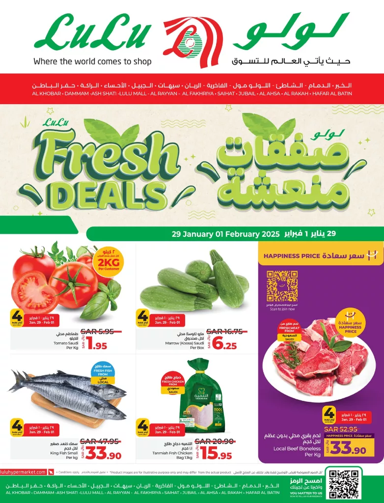 استعدوا لتجربة أفضل أنواع اللحوم والأسماك الطازجة بأسعار لا تقاوم حيث يوفر لولو المنطقة الشرقية خصومات كبيرة على الروبيان الكبير المحلي و الحبار الصغير وسمك الهامور الطازج كما تشمل العروض اللحوم الطازجة مثل لحم الضأن الأسترالي و لحم العجل الباكستاني ولحم الغنم المحلي بالعظم .