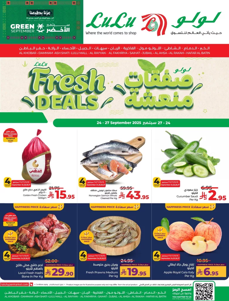 عروض لولو المنطقة الشرقية الأربعاء 24 سبتمبر 2025 تأتيكم بتشكيلة متجددة من اللحوم الطازجة من اللحوم البقرية والضأن والعجول والدجاج الطازج والقطع المميزة المختارة بعناية و تقدم مجموعة من المنتجات الطازجة في مقدمتها الدجاج الطازج والأسماك والخضروات والفواكه المتنوعة وغيرها من المنتجات و باسعار تنافسية تناسب الجميع