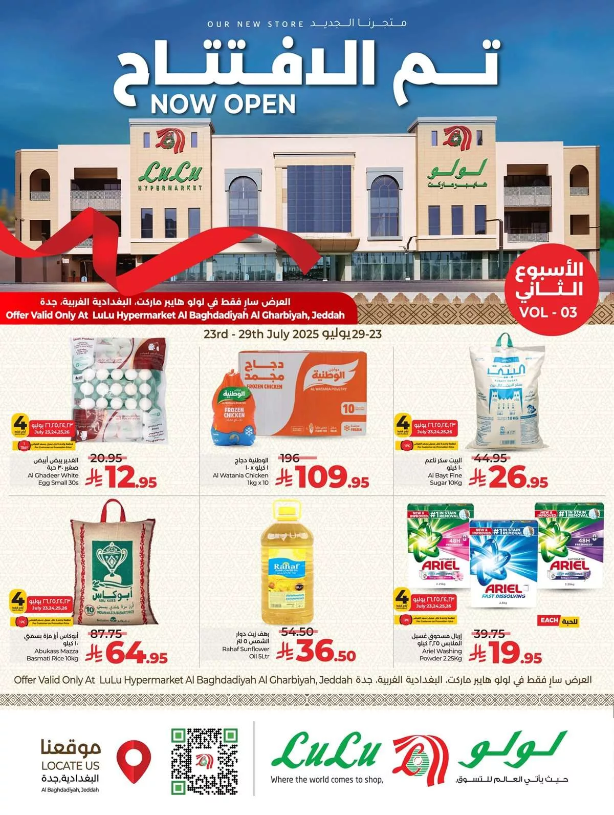 نستعرض لكم احدث عروض لولو جدة بمناسبة افتتاح فرع البغدادية الغربية بتاريخ الاربعاء 23 يوليو 2025 الموافق 28-1-1447هـ و تحتوي عروض اليوم علي الكثير من المنتجات الاستهلاكية التي يبحث عنها الكثير منها الغذائية و البقوليات و لا ننسي ان عروض لولو جدة هذا الاسبوع تشمل العديد من المجمدات و باسعار لا تقبل المنافسة