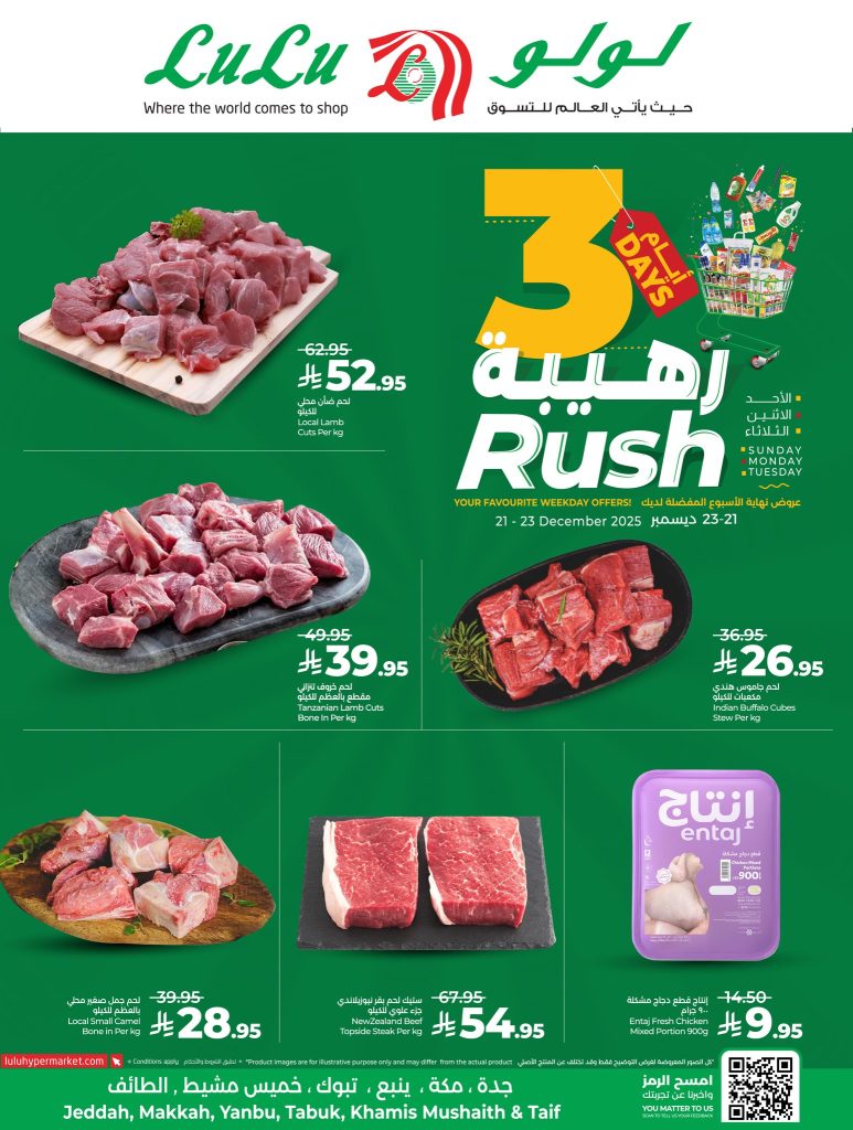 بنتابع معاكم عروض لولو جدة بتاريخ الاحد 1 رجب 1447هـ تشكيلة من الخضروات الطازجة كالطماطم و الكوسا و الخيار و الليمون و بجانب ذلك بتوفر كمان تشكيلة من الفواكه الشهية و بالاضافية الي قطع اللحوم الطازجة و المتنوعة و ايضا هناك الاسماك و المنتجات الغذائية في عرض حصري بارخص الاسعار لمدة 3 ايام .