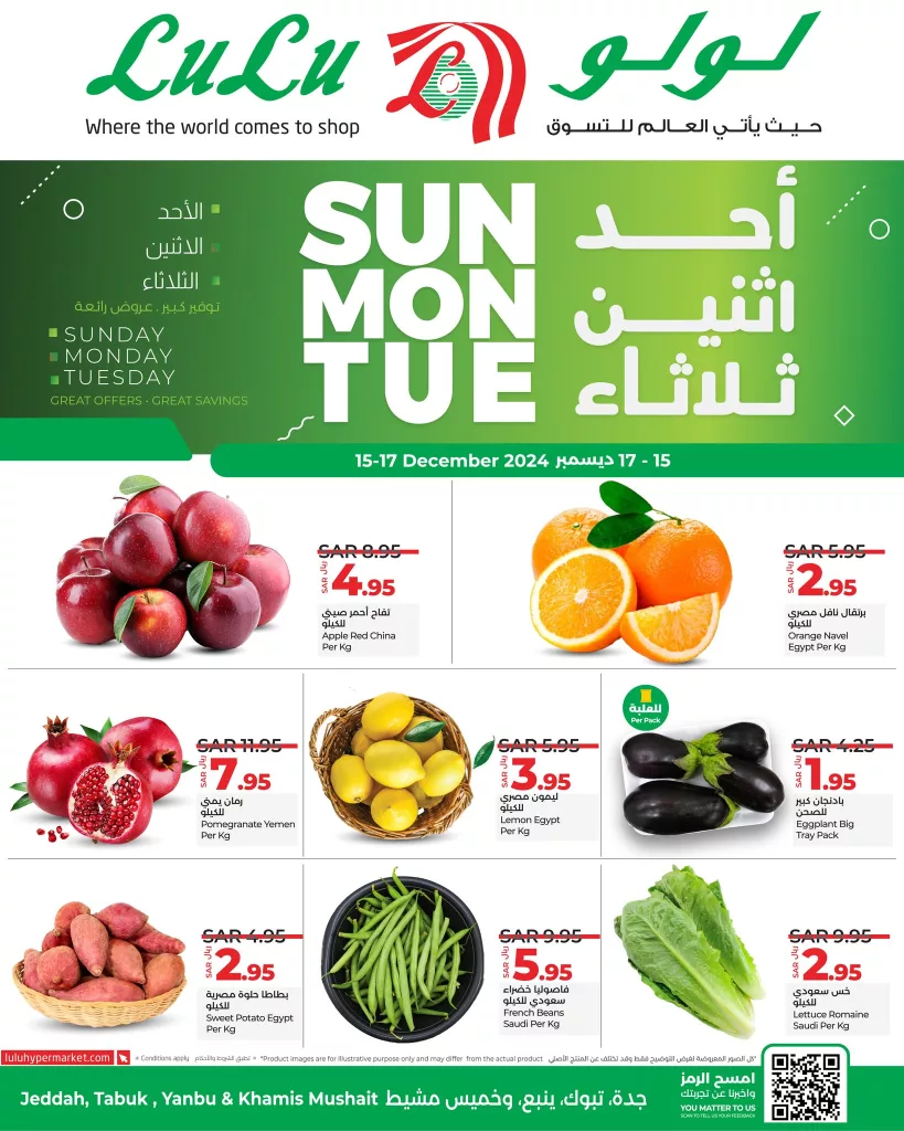 عروض لولو جدة الأحد 15 ديسمبر 2024 تقدم تجربة تسوق مميزة لجميع عشاق الفواكه والخضروات الطازجة والمأكولات البحرية و تشمل العروض تخفيضات مذهلة على مجموعة متنوعة من المنتجات الغذائية مثل البرتقال والرمان والليمون الأوروبي بأسعار تنافسية تلبي احتياجات المستهلكين وتضمن جودة عالية