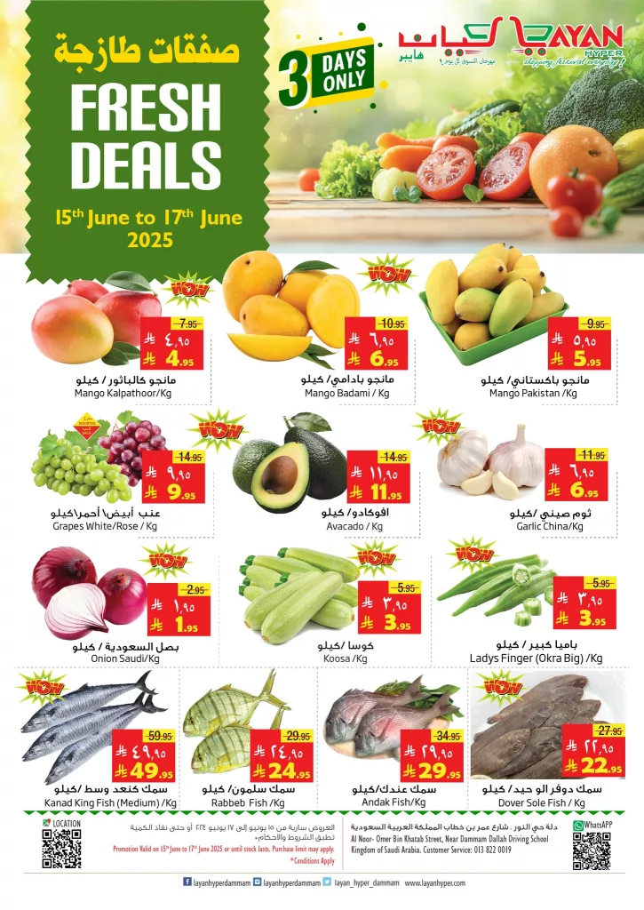 عروض ليان هايبر ماركت الأحد 15 يونيو 2025 تقدم تشكيلة مميزة من الفواكه الموسمية الطازجة التي تشمل أنواعًا مختلفة من المانجو مثل الباكستاني والبادامي والكالباثور إلى جانب العنب الأبيض والأمريكي لتلبية أذواق مختلف العملاء كما تتيح هذه العروض فرصة ذهبية لمحبي المذاق الحلو والفاكهة النضرة للاستفادة من التخفيضات