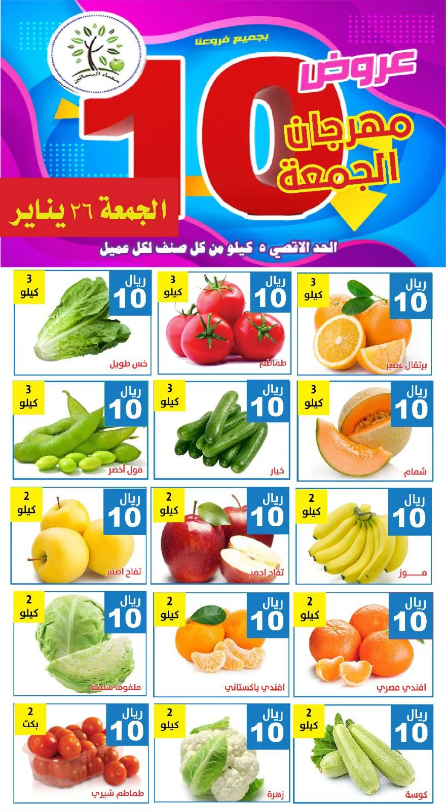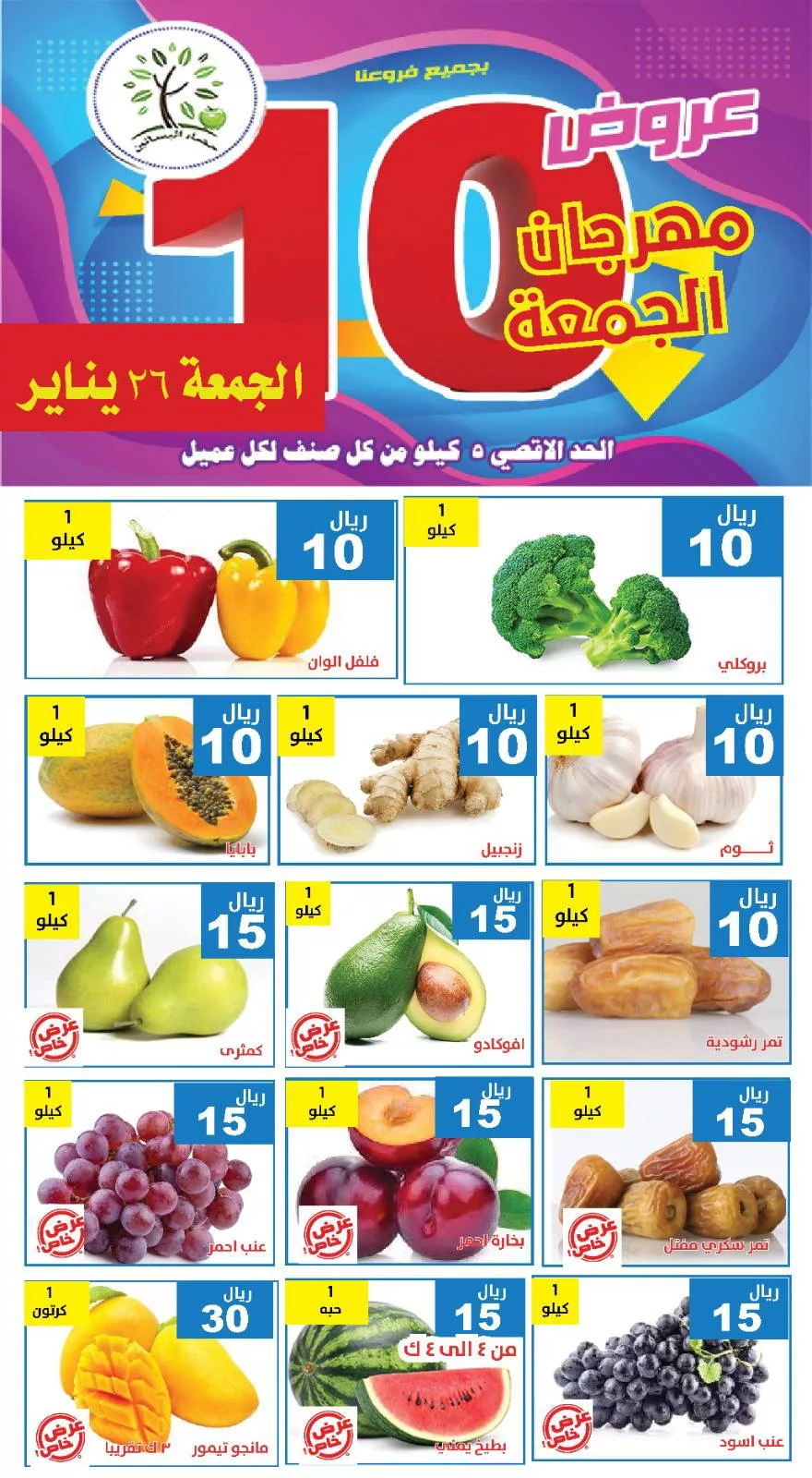 عروض مؤسسة حصاد البساتين هايبر ماركت الجمعة 24 يناير 2025 تقدم لك خصومات هائلة على المنتجات الطازجة تشمل العروض خصومات على اللحوم الطازجة الدواجن المجمدة والمأكولات البحرية بالإضافة إلى الفواكه الطازجة والخضروات العضوية التي تمنحك خيارات غذائية متنوعة