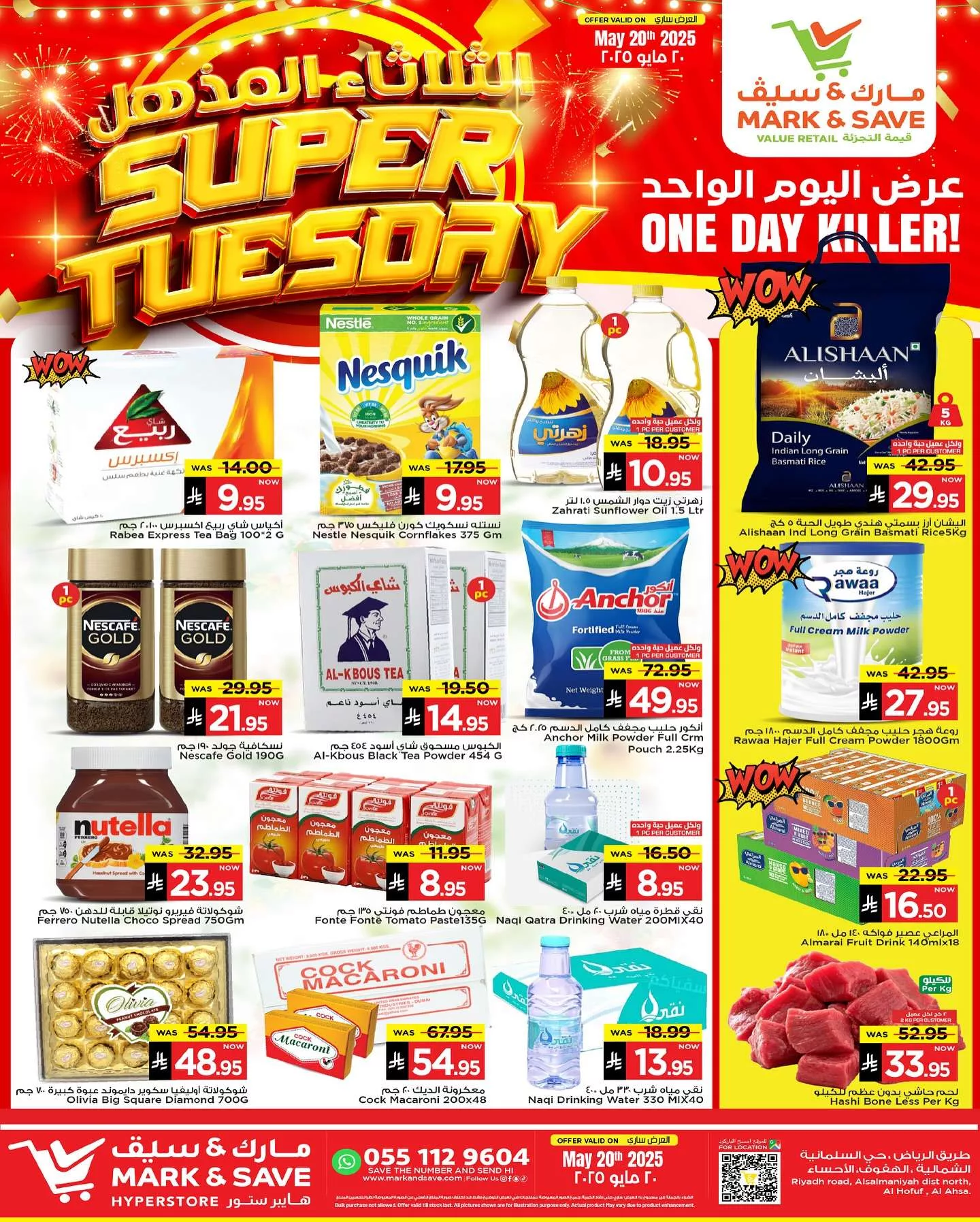 عروض مارك اند سيف الاحساء الثلاثاء 20 مايو 2025 تشمل كذلك تشكيلة واسعة من المنتجات المنزلية والإلكترونية والملابس مثل أطقم الأواني والبطانيات والأجهزة الذكية والهواتف والدراجات مما يتيح خيارات تسوق متعددة في مكان واحد كما تتوفر عروض مميزة على اللحوم والمشروبات والعصائر والمكرونة