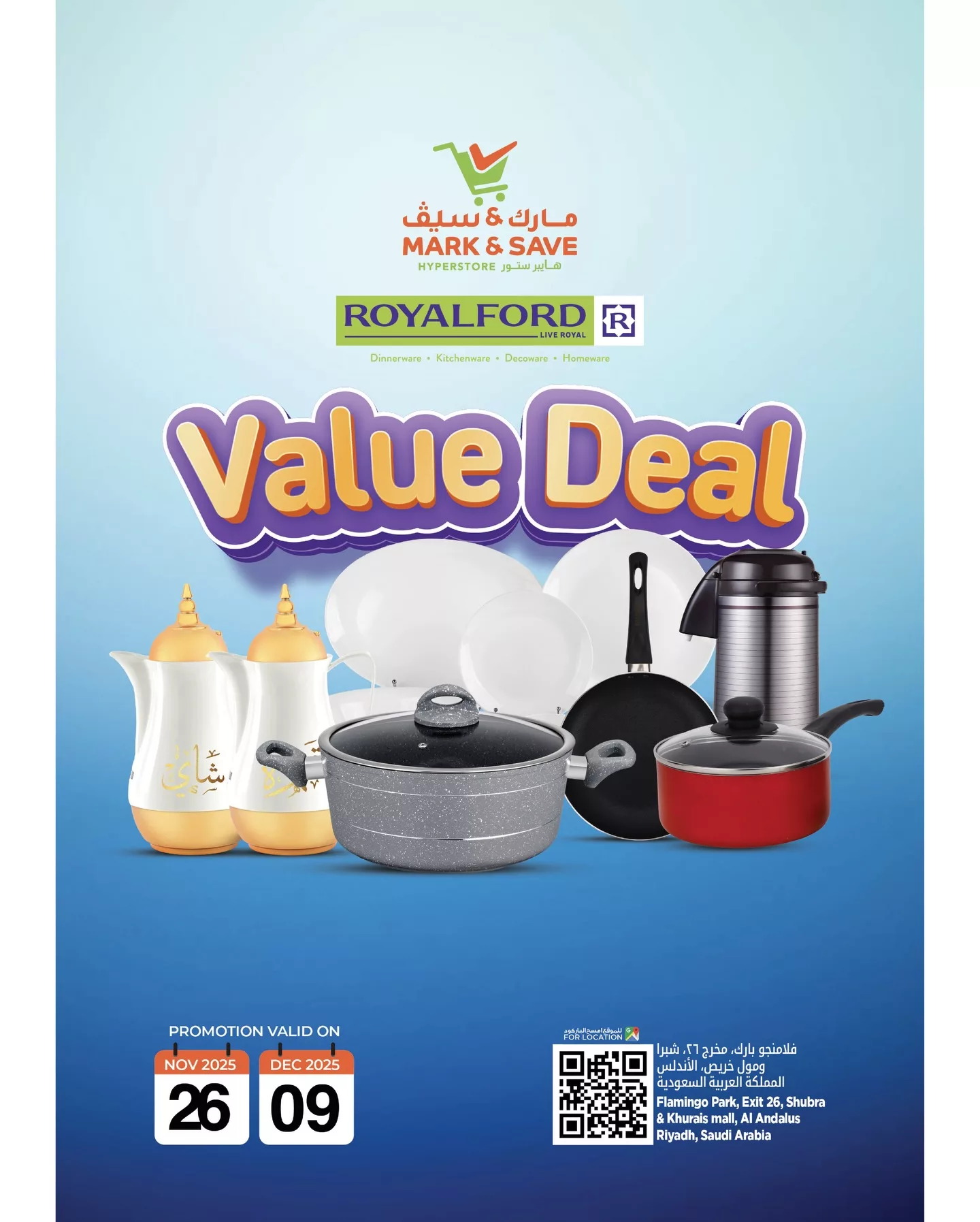 نقدم لكم اليوم عروض مارك اند سيف الرياض الاحد 30 نوفمبر 2025 و تحتوي علي أواني الطهي المتنوعة من المقالي غير اللاصقة وأطقم الجرانيت والأواني مقاومة للالتصاق مع توفر قدور الضغط العملية كما تشمل مجموعة من أطقم الأطباق والأواني الميلامين والأوبال وغيرها من المنتجات و باقل الاسعار المناسبة للجميع .