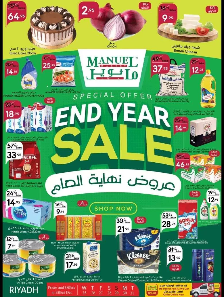عروض مانويل الرياض الأربعاء 25 ديسمبر 2024 تقدم لكم خصومات رائعة تشمل مختلف الأقسام و تتوفر تخفيضات على السلع الغذائية مثل اللحوم الطازجة و الدجاج المبرد والأسماك المحلية كما تشمل العروض المنتجات المعلبة و المعكرونة والزيوت النباتية بجانب الفواكه والخضروات العضوية.
