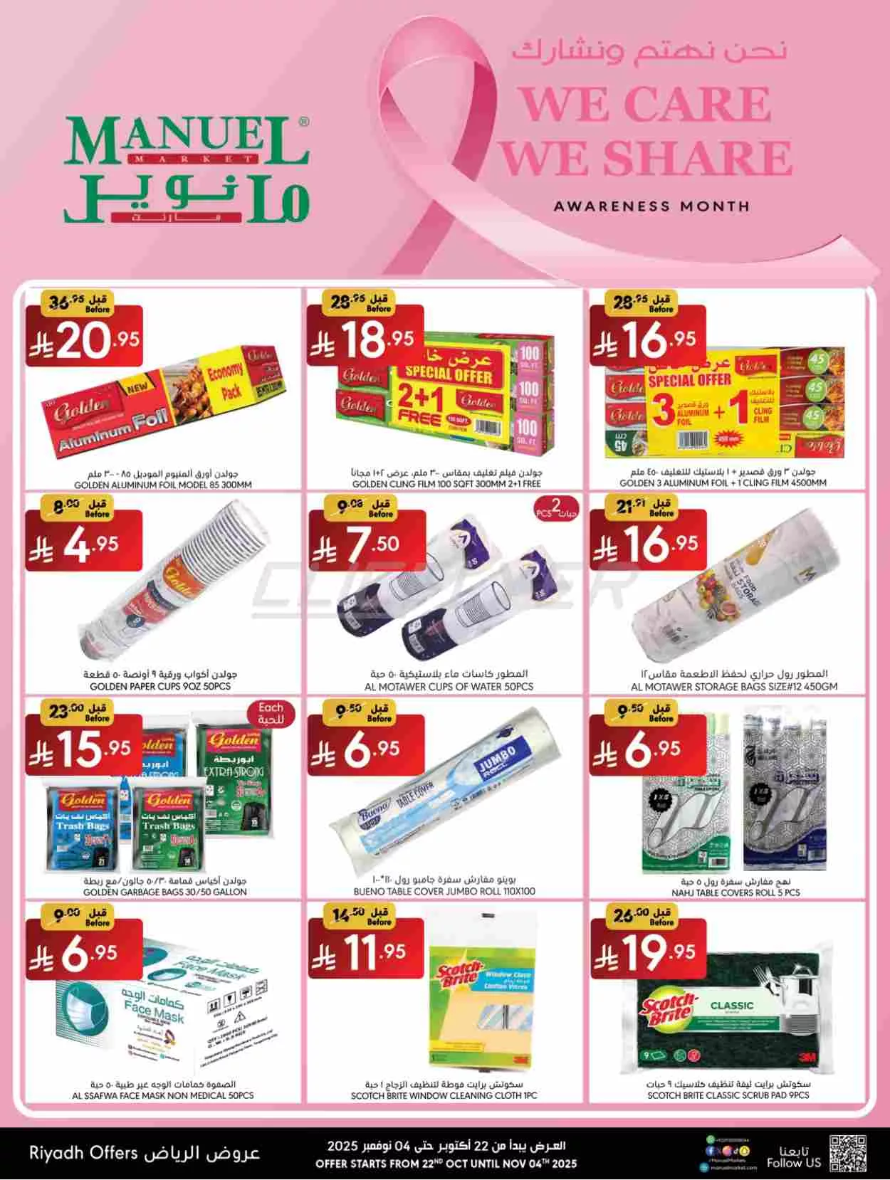 عروض مانويل الرياض الأسبوعية الأربعاء 22 أكتوبر 2025 تبدأ بالأجهزة المنزلية الحديثة مثل أفران الطهي الكهربائية وأجهزة تحضير العصائر وأجهزة الكريب والمكانس مع تخفيضات على أدوات المائدة والأواني الحرارية و بتشمل كمان المواد الغذائية من العصائر والمعلبات والمكسرات والعسل الطبيعي والحبوب الجافة والشوكولاتة الراقية