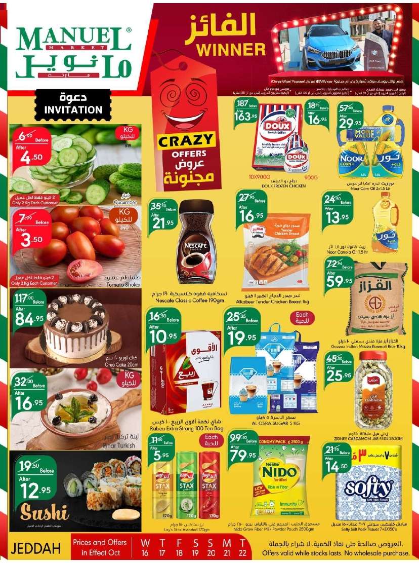 عروض مانويل جدة الأربعاء 16 أكتوبر 2024 تقدم خصومات مذهلة على مختلف المنتجات التي يحتاجها المتسوقون و تشمل العروض تخفيضات على الخضروات والفواكه الطازجة بالإضافة إلى اللحوم والدواجن والأسماك ما يتيح لك شراء احتياجاتك الغذائية بأسعار أقل.