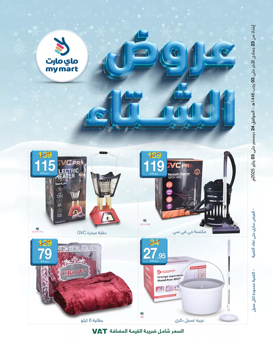 عروض ماي مارت الثلاثاء 24 ديسمبر 2024 تتميز بتقديم مجموعة متنوعة وشاملة من المنتجات التي تلبي احتياجات المنزل والأسرة بأفضل الأسعار من الألعاب الترفيهية للأطفال إلى الأدوات المنزلية والأجهزة الكهربائية و يقدم العرض تخفيضات مميزة مع ضمان جودة عالية وخيارات تناسب الجميع.