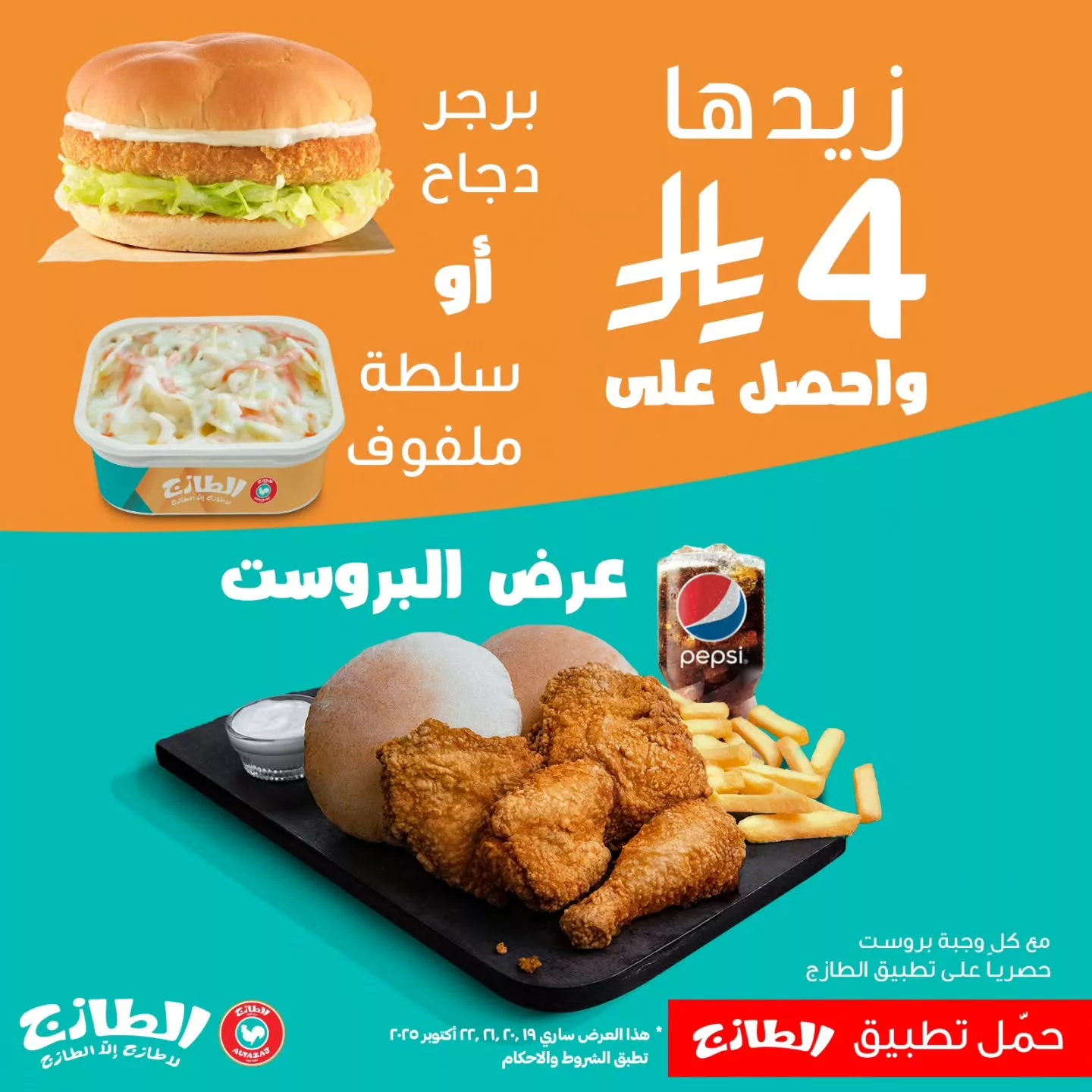 - العرض حصريا عبر تطبيق الطازج لا تفوتوا التوفير و الوجبات الشهية