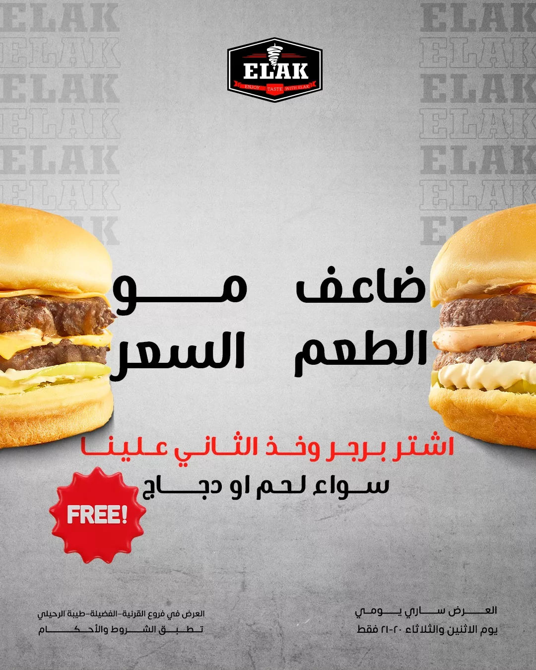 عروض مطعم شاورما الك اشتري ساندويتش و الثاني علينا يومي 20-21 اكتوبر 2025 اطلب الان برجر او شاورما و الثاني علينا شو ناطر وفر و استمتع