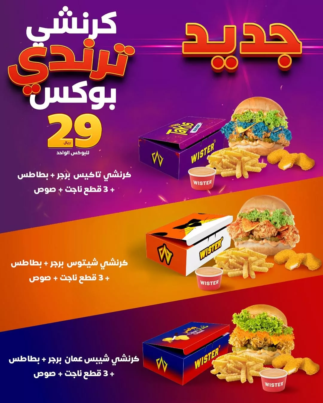 عروض مطعم ويستر على كرنشي ترندي بوكس بسعر 29 ريال فقط متوفر في الفروع فقط هذا السعر للبوكس الواحد