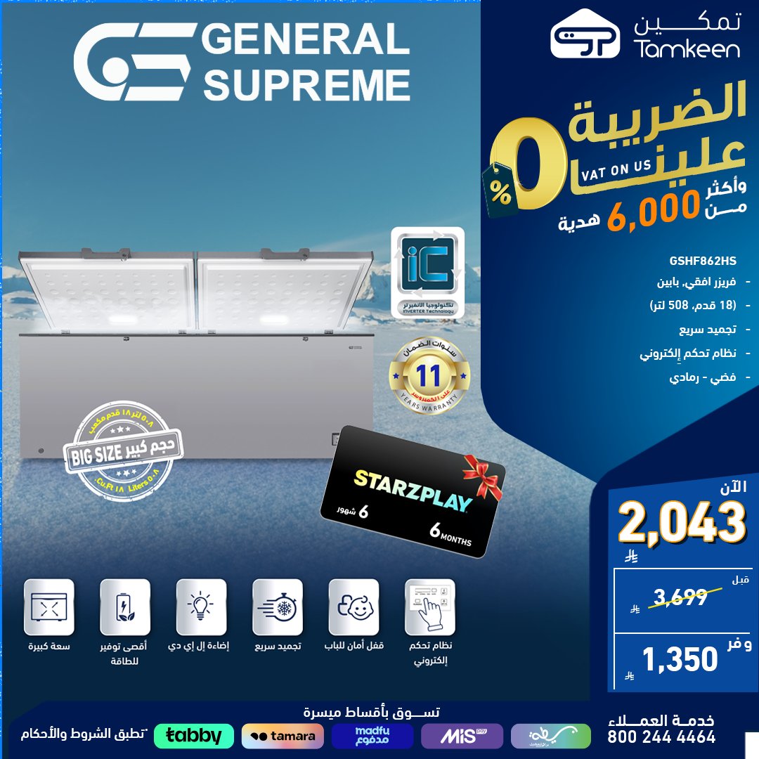 فريزر أفقي من جنرال سوبريم General Supreme السعر الحالي: 2,043 ريال .