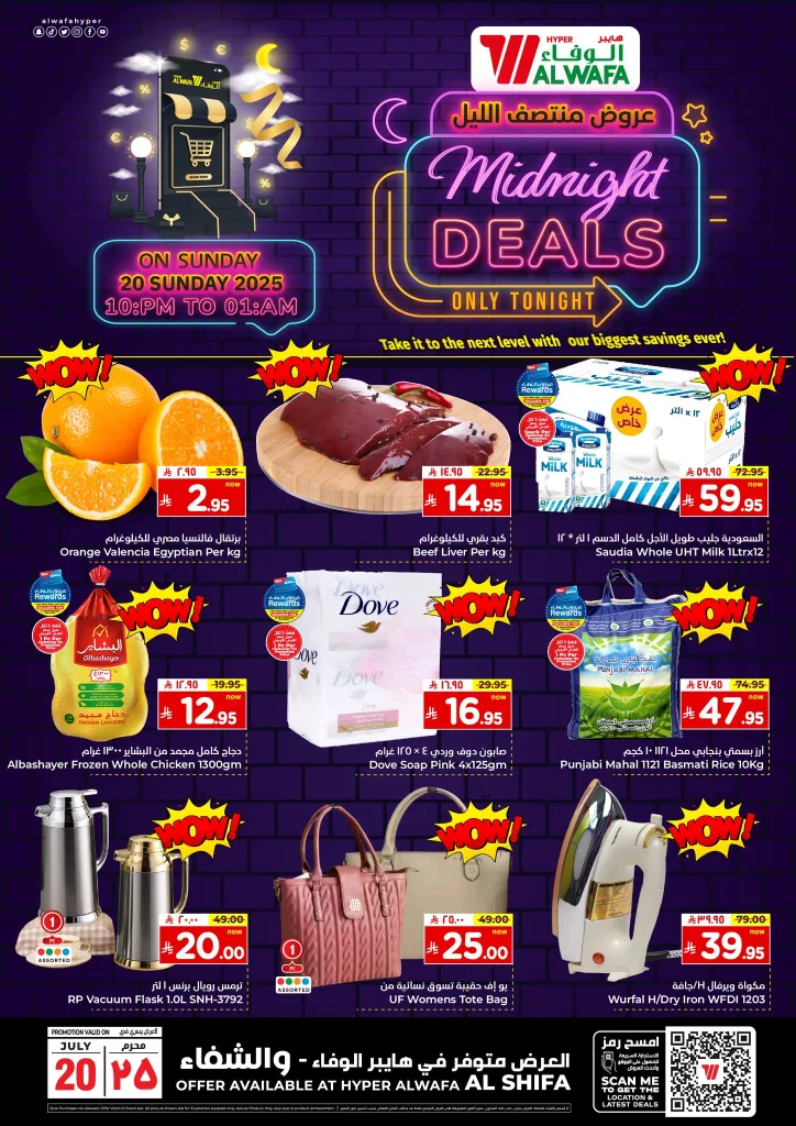 عروض الوفاء هايبر ماركت تضم أيضا منتجات استهلاكية أساسية مثل الحليب طويل الأجل من السعودية وصابون دوف الشهير برائحته المنعشة إلى جانب الأرز البسمتي الفاخر لعشاق الطبخ الأصيل وتشمل كذلك عروضًا مغرية على الأدوات المنزلية