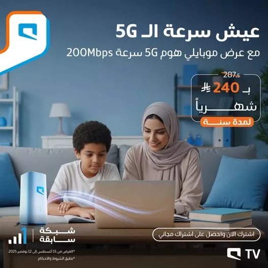 - عرض موبايلي هوم 5G لمدة سنة بسرعة 200 ميجا