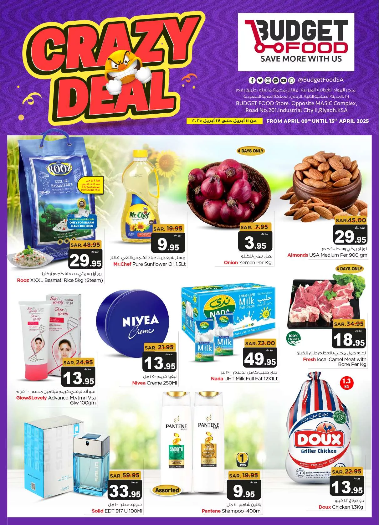 عروض ميزانية الطعام الأربعاء 9 أبريل 2025 تقدم خصومات على المعلبات الاقتصادية مثل الفول والطماطم والزيت النباتي بالإضافة إلى اللبن طويل الأجل وعصائر الفواكه المركزة والجبن الشرائح والمعكرونة سريعة التحضير وخبز التوست الكامل كما تشمل عروضًا على الزبادي بنكهة التوت والصلصات الجاهزة والحبوب الكاملة