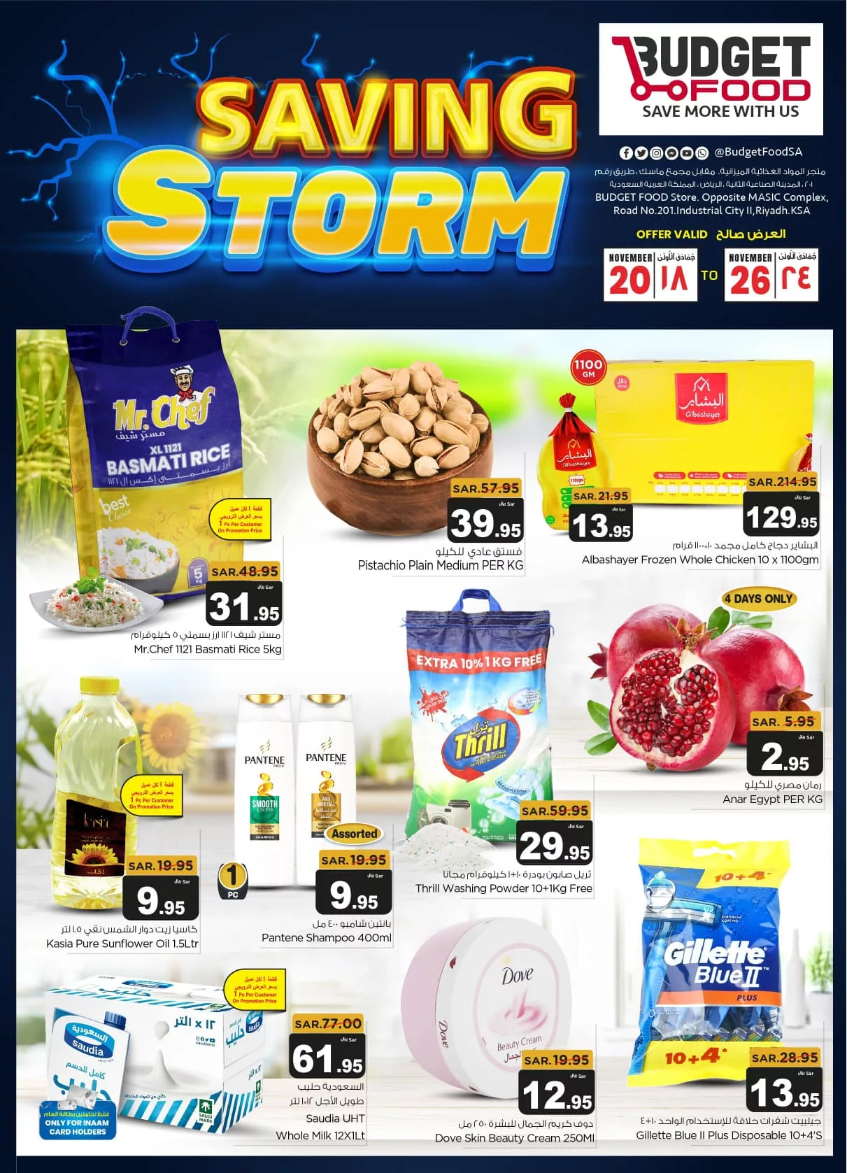 تشمل العروض أيضا السلع الأساسية مثل الأرز و البقوليات وزيت الطهي و بجانب المخبوزات الطازجة والحلويات في قسم الأدوات المنزلية و تتوفر تخفيضات على أجهزة الطبخ وأواني المطبخ بجانب الملابس الشتوية ومستحضرات العناية الشخصية.
