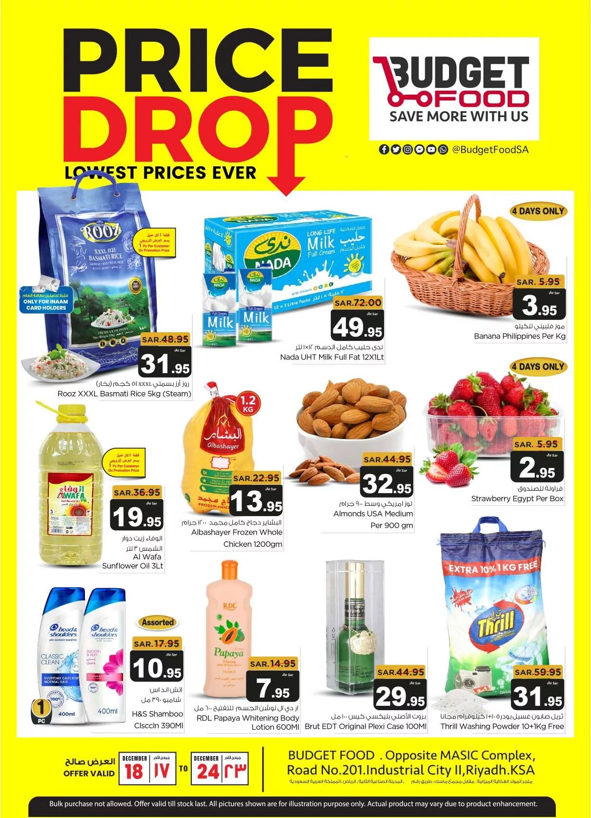 عروض ميزانية الطعام الأربعاء 18 ديسمبر 2024 تقدم تخفيضات رائعة على اللحوم والدواجن الطازجة بجانب الأسماك المجمدة مثل الفيليه والكاليماري كما تشمل الفواكه الطازجة مثل البرتقال و الموز والتفاح الأحمر والخضروات الموسمية و لمحبي الحلويات تتوفر عروض على البسكويت و الشوكولاتة