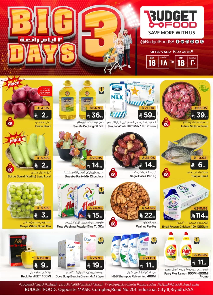 عروض ميزانية الطعام اليوم تشمل أيضًا تخفيضات قوية على المواد الغذائية اليومية مثل الزيوت النباتية الطازجة والحليب المعلب واللحوم والدواجن والخضار والفواكه الطازجة بالإضافة إلى منتجات العناية الشخصية والمنظفات المنزلية مما يوفر تجربة تسوق متكاملة بأسعار تنافسية