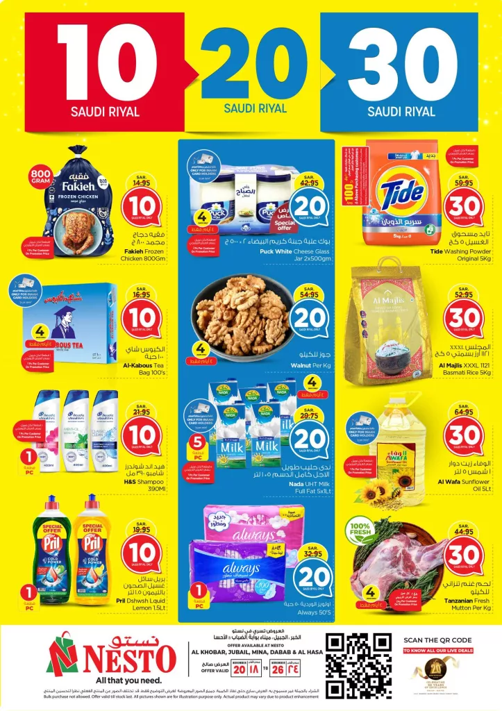 عروض نستو الأحساء التي تبدأ من يوم الخميس 21 نوفمبر 2024 تأتي مع تخفيضات ضخمة على اللحوم والدواجن الطازجة بالإضافة إلى الأسماك البحرية التي تناسب كافة الأذواق كما تشمل العروض مستلزمات الطهي الأساسية مثل البهارات والتوابل الفاخرة التي تمنح وجباتكم نكهة مميزة.