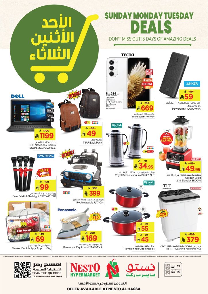 عروض نستو الأحساء الأحد 17 أغسطس 2025 تقدم تشكيلة متنوعة من الإلكترونيات والمستلزمات المنزلية من بينها أجهزة كهربائية مثل الغسالات والخلاطات بالإضافة إلى لابتوبات وهواتف ذكية و تمتد لتشمل منتجات العناية الشخصية والنظافة اليومية حيث تتوفر صابون هملايا وكريم دوف ولوشن نيفيا إلى جانب معجون كولجيت