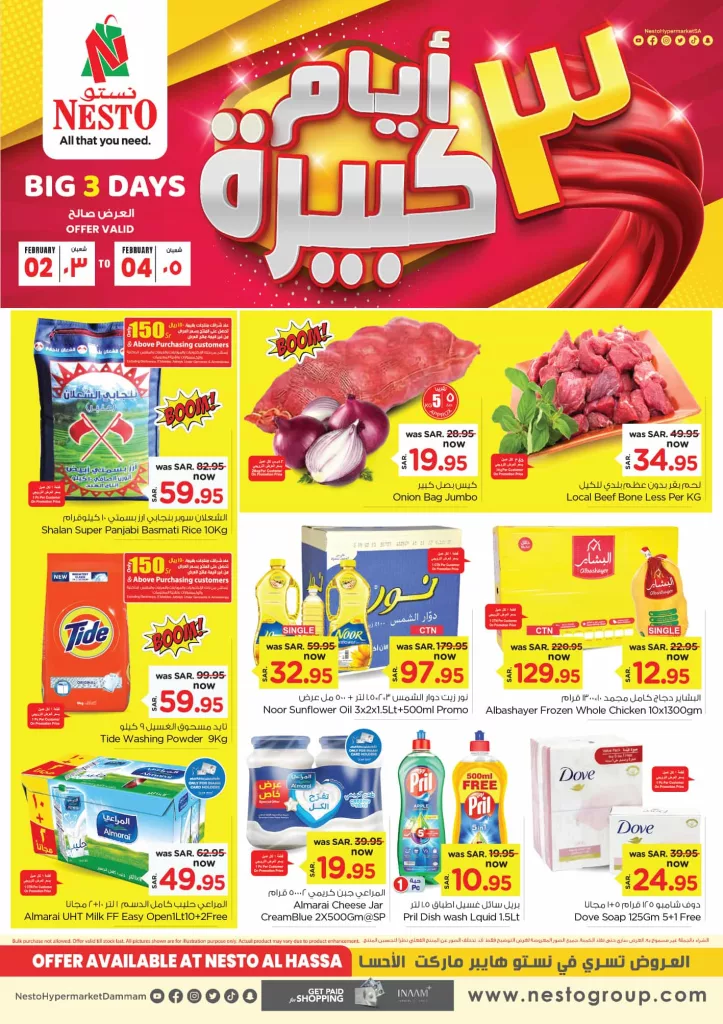 عروض نستو الأحساء الأحد 2 فبراير 2025 تقدم خصومات هائلة على المنتجات الغذائية الأساسية مثل الحبوب والمعكرونة والطحين والسكر مما يجعل التسوق أكثر اقتصادا للعملاء الراغبين في شراء المنتجات بالجملة توفر هذه العروض مجموعة متنوعة من الخيارات التي تلبي احتياجات كل منزل أو مطعم بأسعار تنافسية