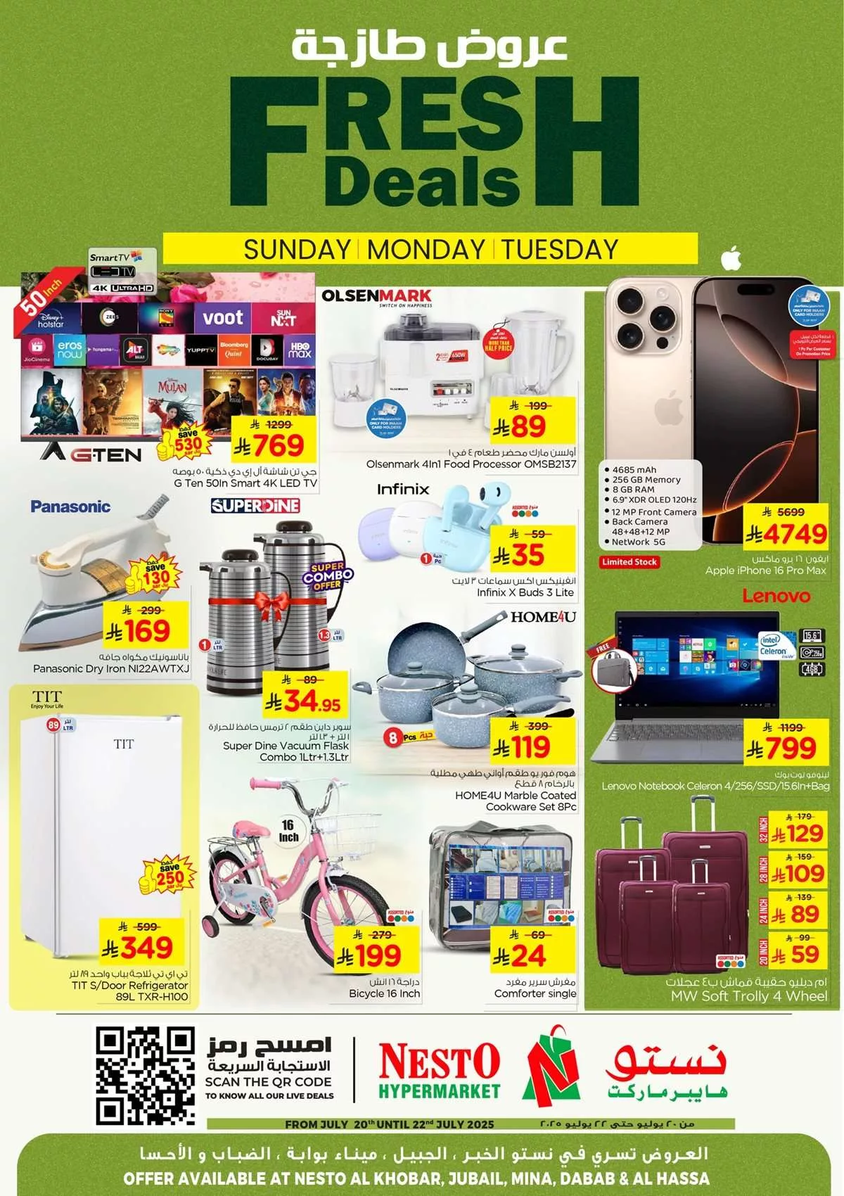عروض نستو الأحساء الأحد 25 محرم 1447هـ تشمل باقة متنوعة من أحدث الإلكترونيات والأجهزة المنزلية التي تلبي احتياجات الأسرة العصرية حيث تقدم شاشات ذكية وهواتف متطورة ولابتوبات عملية بجودة عالية كما تتوفر أدوات المطبخ وأجهزة الطهي والمكاوي والثلاجات والدراجات