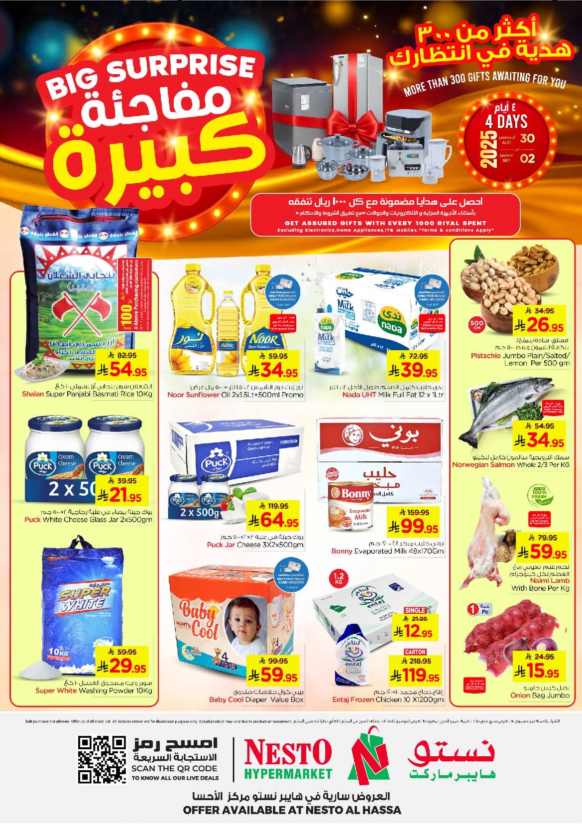 عروض نستو الأحساء الاحد 31 اغسطس 2025 تقدم مفاجآت كبيرة على مجموعة متنوعة من السلع الغذائية والاستهلاكية حيث تشمل التخفيضات أرز بسمتي وشاي وزيوت الطهي ومنتجات الألبان مثل الجبن والحليب المجفف إضافة إلى العروض الخاصة على المنظفات والحفائظ اليومية لتلبية احتياجات الأسرة بأسعار منافسة