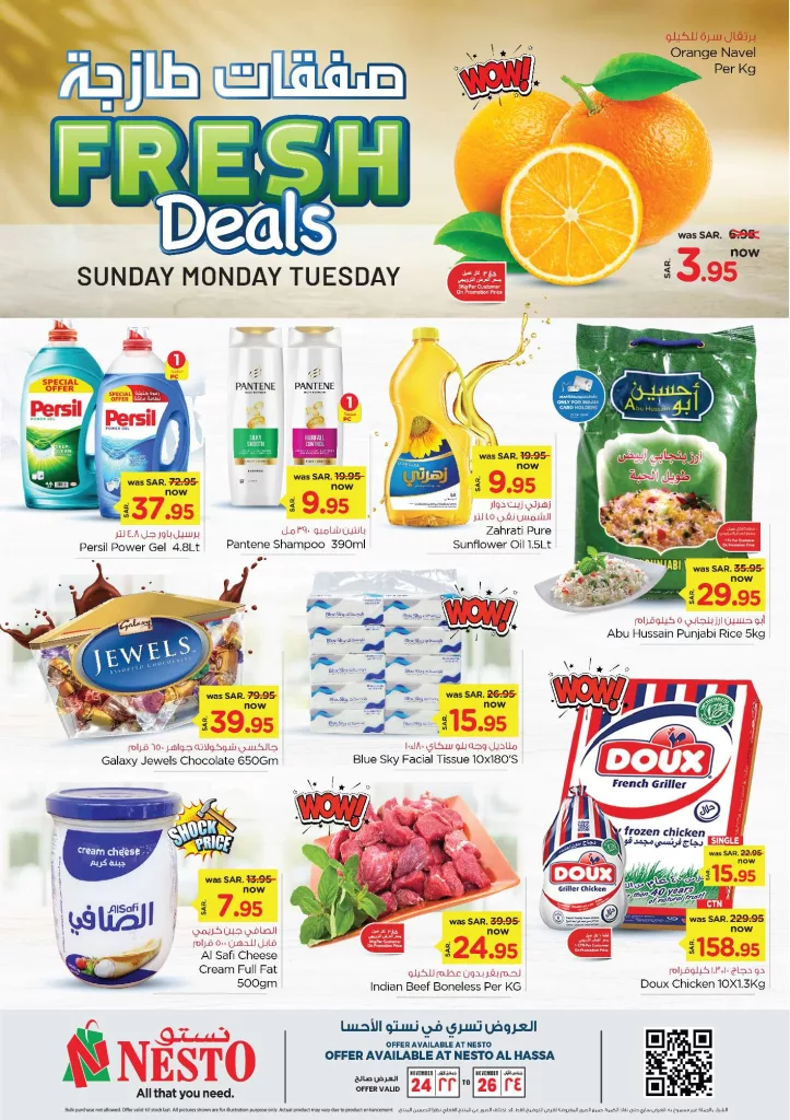 عروض نستو الأحساء لهذا الأسبوع تقدم مجموعة متنوعة من المنتجات بأسعار مخفضة بشكل ملحوظ مما يجعلها الخيار المثالي لكل أفراد الأسرة و ستجدون أفضل العروض على الفواكه والخضروات الطازجة مثل البرتقال و الرمان والتفاح بالإضافة إلى اللحوم الطازجة عالية الجودة