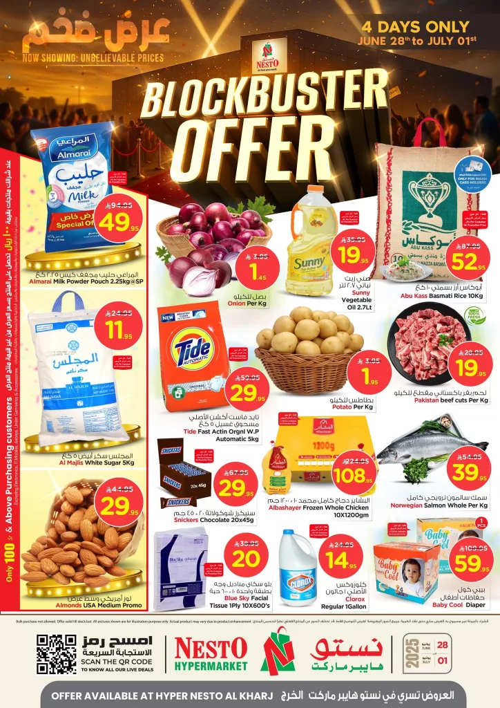 عروض نستو الخرج اليوم الجمعة 27 يونيو 2025 تقدم مجموعة واسعة من المنتجات الطازجة والمجمدة لتلبية احتياجات الأسرة اليومية تشمل الخضروات مثل الجزر والملفوف والبطيخ والعنب والمانجو بجودة عالية وتشكيلة مميزة من اللحوم الطازجة مثل اللحم البقري والهندي والجمل والدجاج المجمد بأسعار منافسة