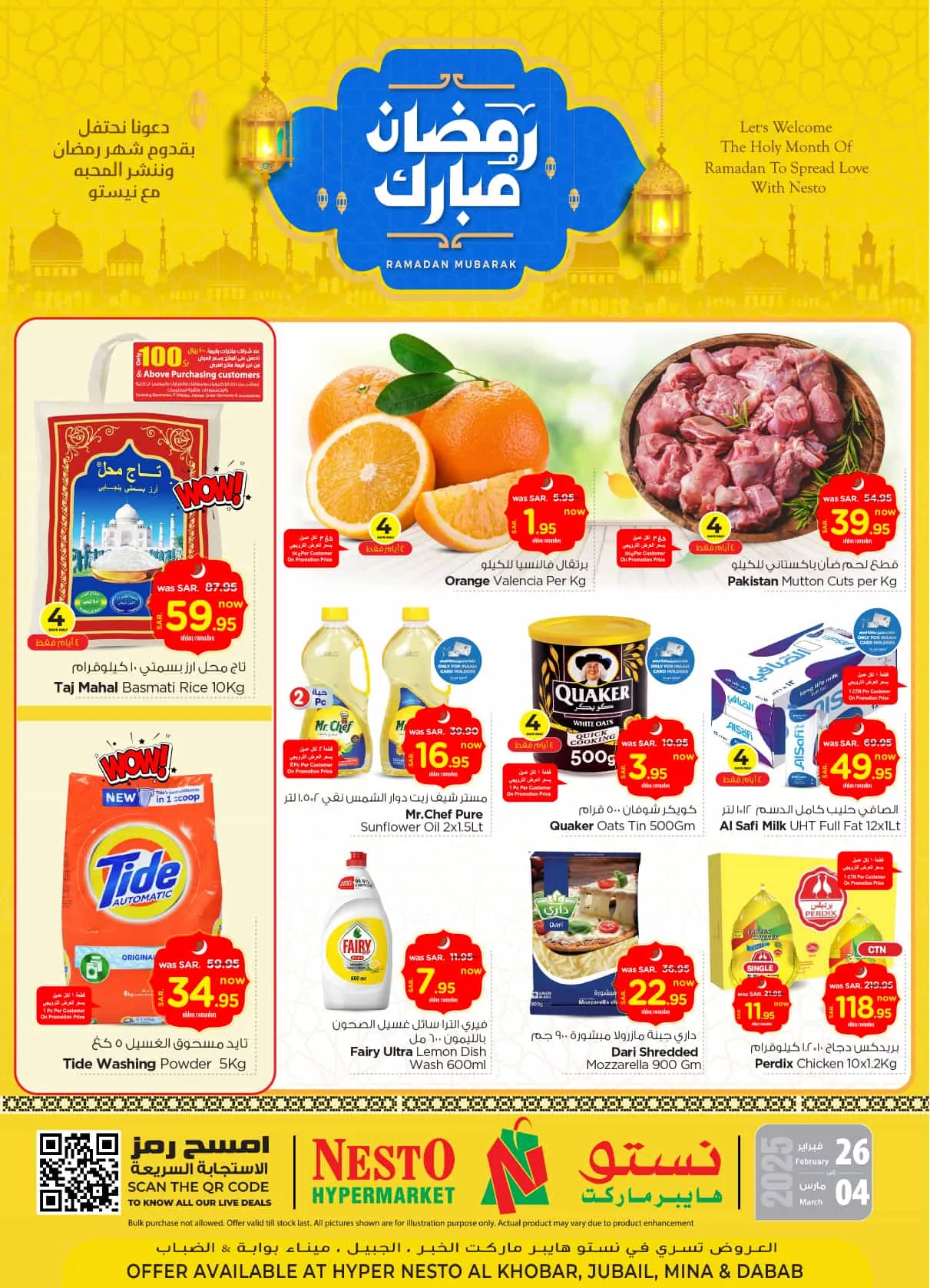 عروض نستو الدمام الأربعاء 26 فبراير 2025 تأتي بتخفيضات رائعة على تشكيلة واسعة من المنتجات الطازجة والمجمدة و استمتع بخصومات على الأجبان المستوردة والزبادي الطبيعي والمخبوزات الطازجة بالإضافة إلى اللحوم الحمراء والدجاج الطازج في قسم المنتجات البحرية، هناك عروض على الروبيان الطازج والسلمون الفيليه